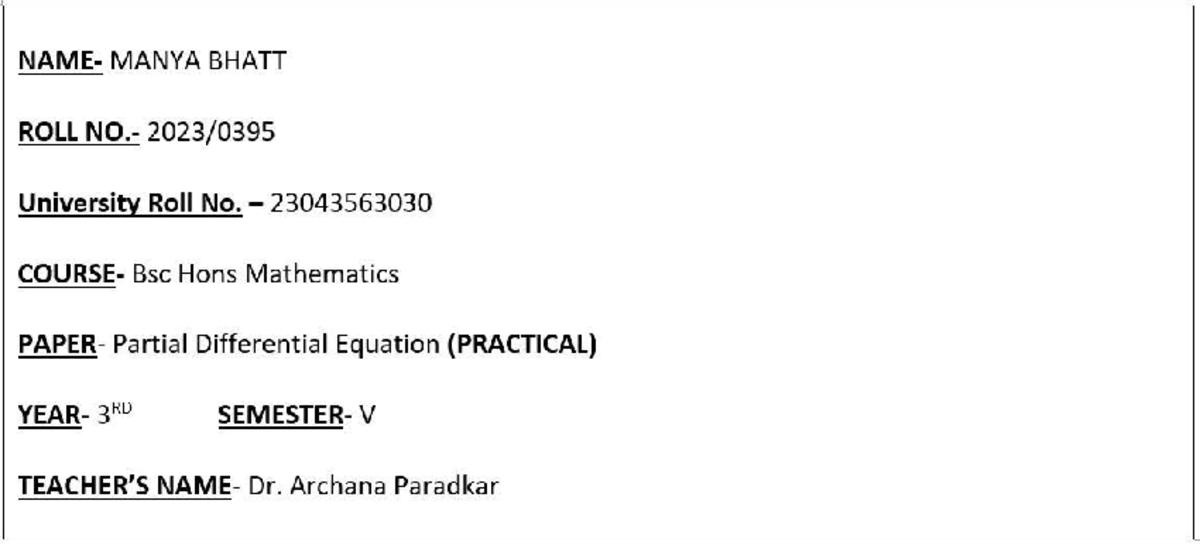 BSc Hons Mathematics (23043563030) PDE Practical Solutions and Plots ...