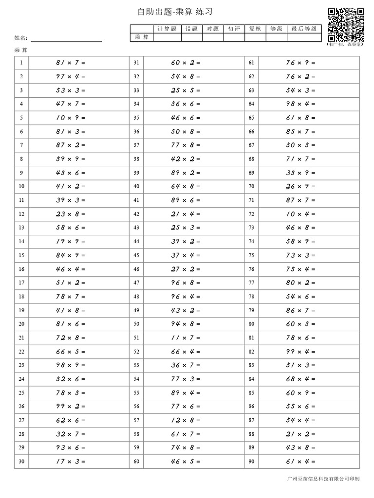 2x1 Multiplication Worksheets PDF