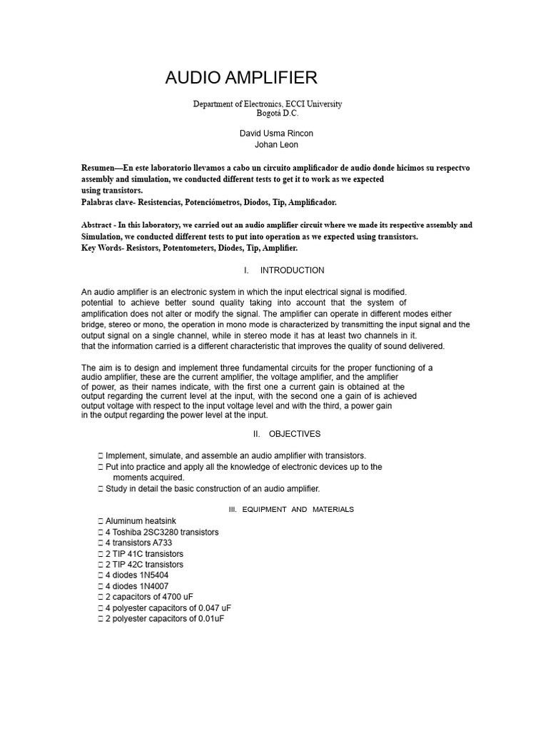 Audio Amplifier | PDF | Amplifier | Transistor