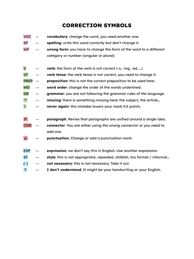 A Must-have Poster: Writing Correction Code | EFL Collective