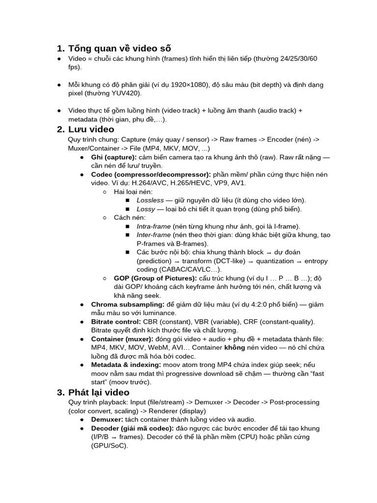 1. Tổng quan về video số: Ghi (capture) : Codec (compressor ...
