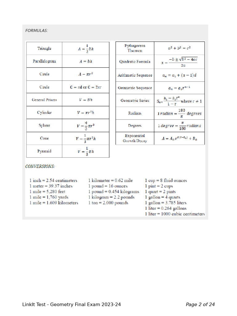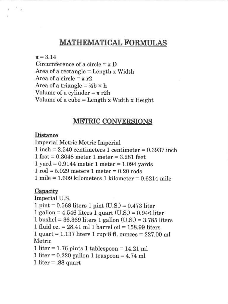 Formula Sheet PDF | PDF | Volume | Area