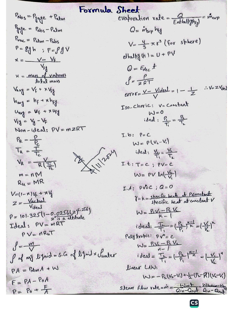Formula Sheet | PDF | Science & Mathematics