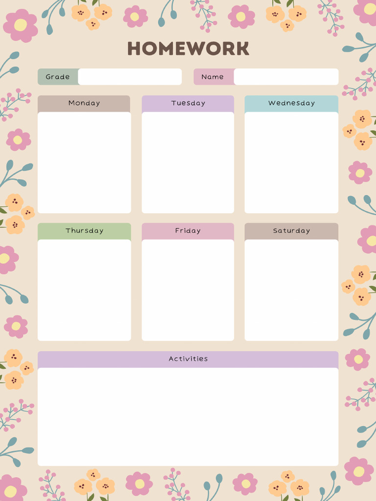 Free Printable Homework Planner Templates [Excel, PDF, Word] Cute