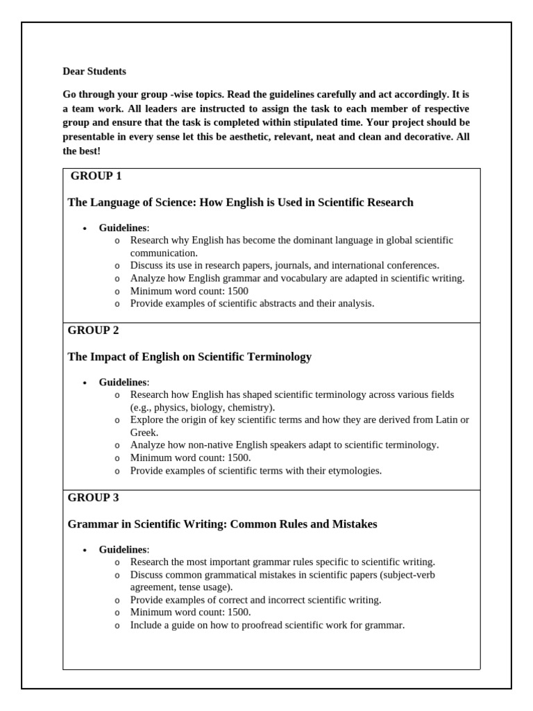 Guidelines for Scientific Writing Projects | PDF | English Language ...