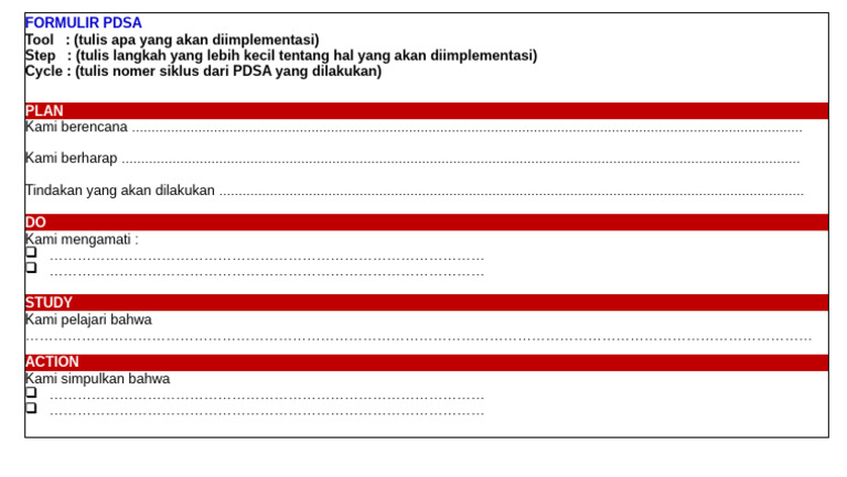 Fillable Plan Do Study Act (PDSA) Tool for Health Care PDSA Cycle ...