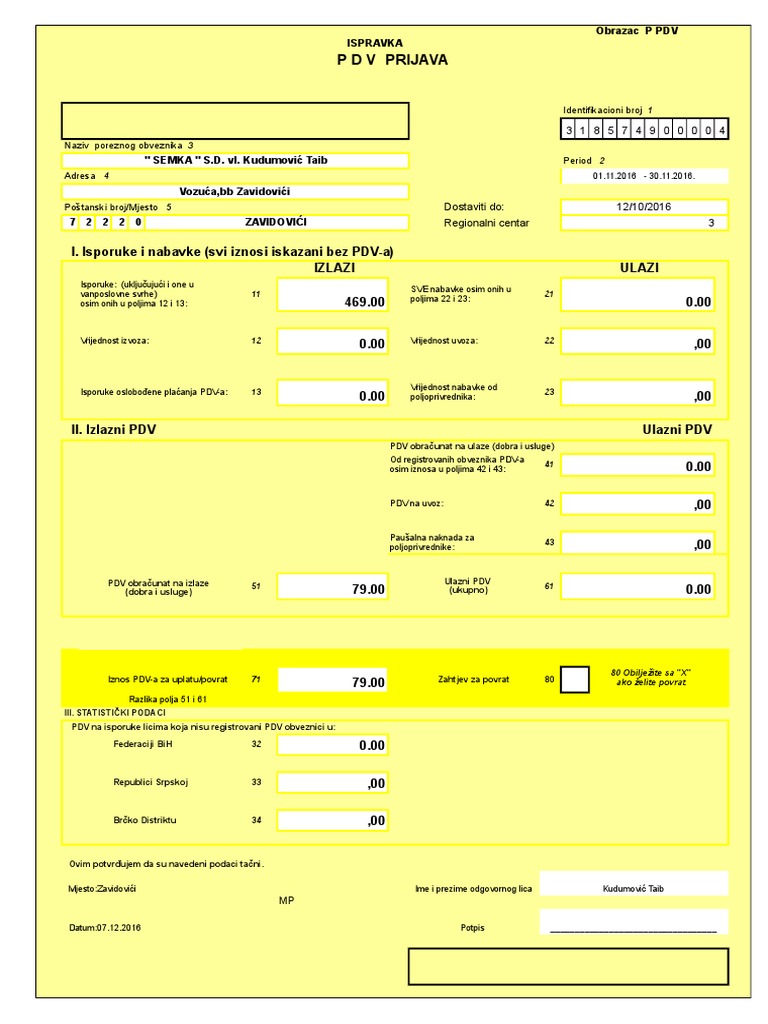 Obrazac Za Prijavu Pdv-A | PDF
