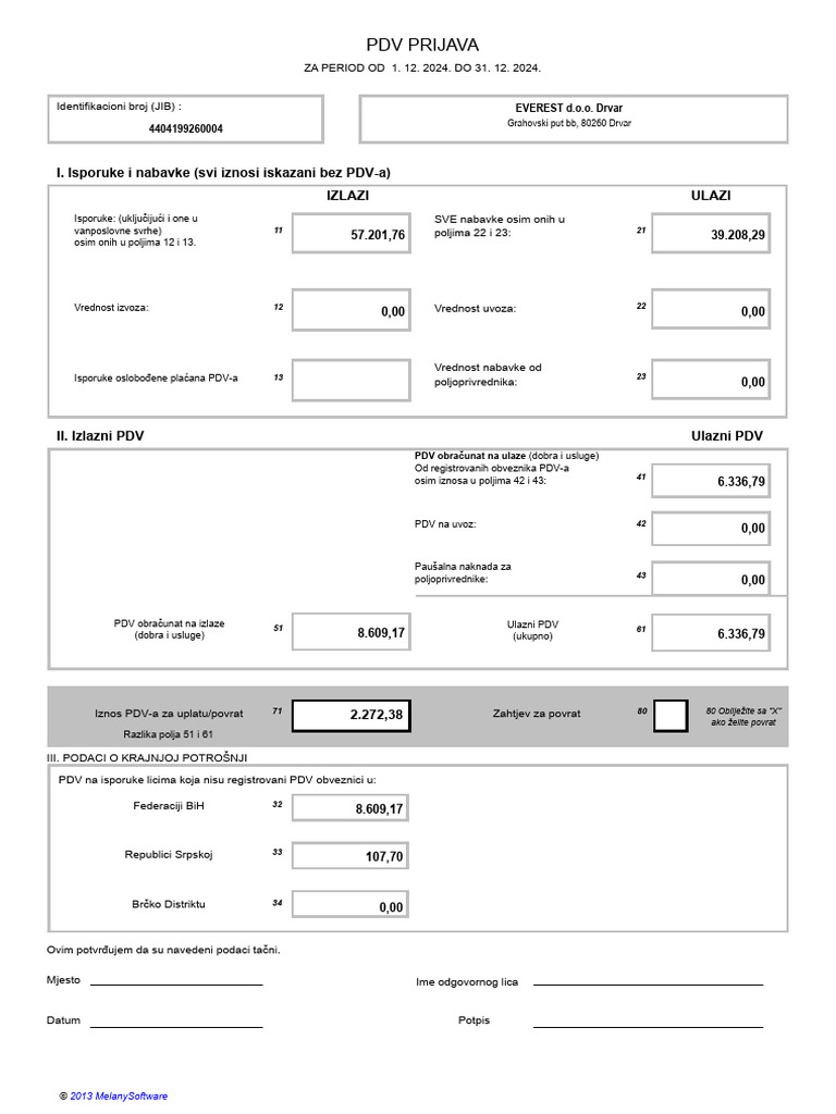 PDV Prijava Decembar 2024 | PDF