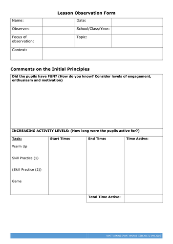 PE Lesson Observation Forms by matkins1974 - Teaching Resources - Tes