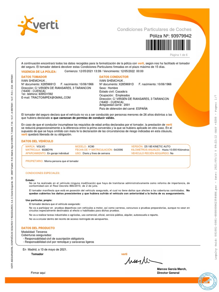 CCPP Poliza 93979942 | PDF | Póliza de seguros | Seguro