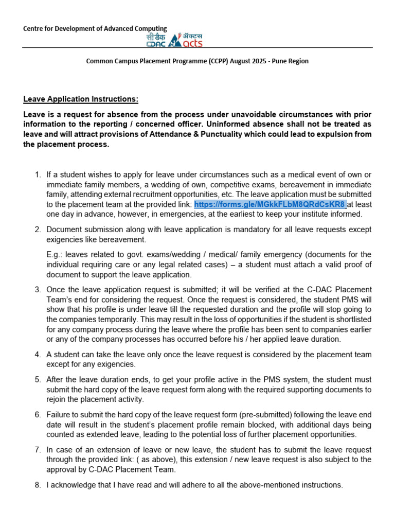 Leave Application Format CCPP August 2025 | PDF