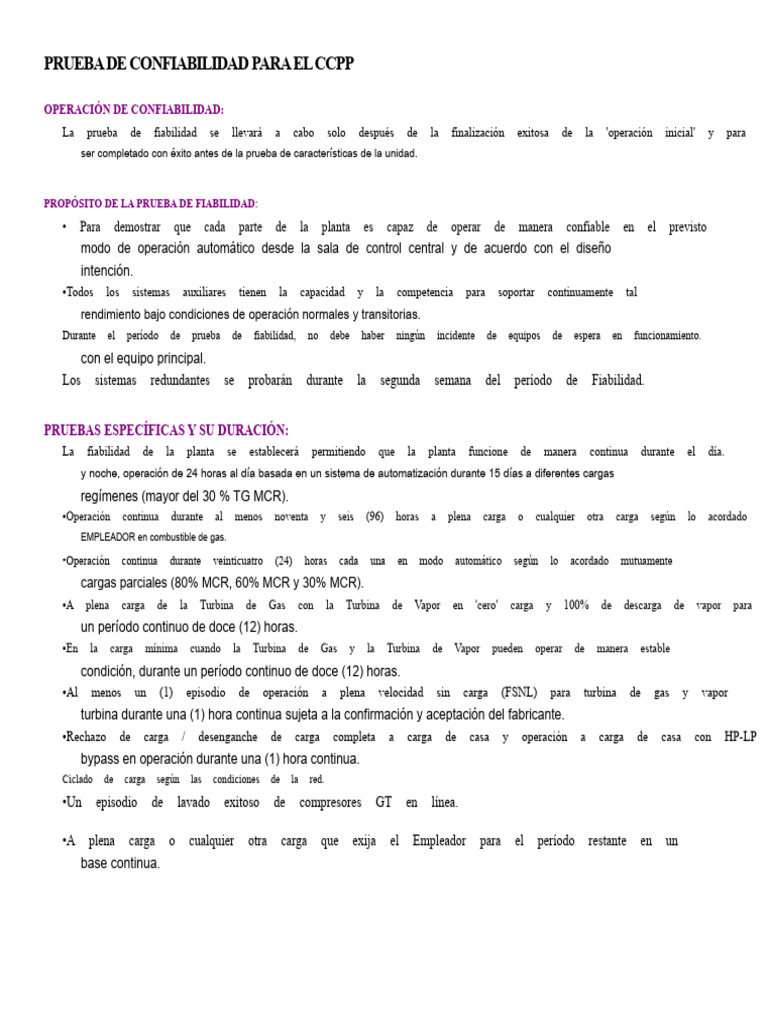 Prueba de Confiabilidad del CCPP | PDF | Ingeniería de confiabilidad