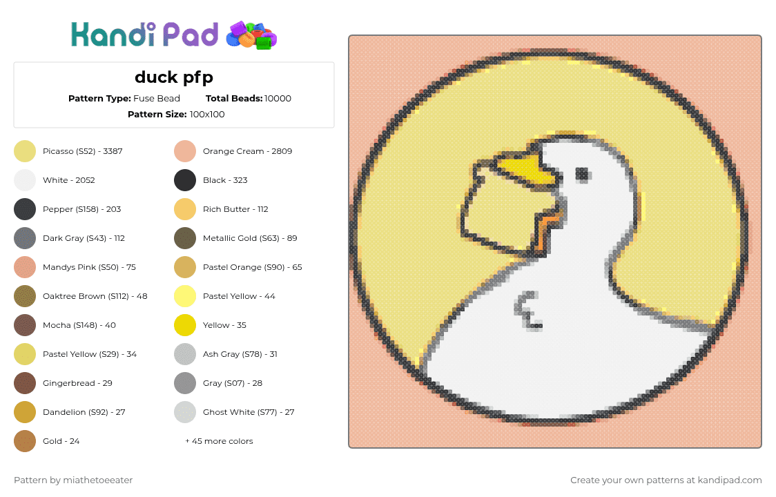 Duck pfp Fuse Bead Pattern - Kandi Pad | Kandi Patterns, Fuse Bead ...