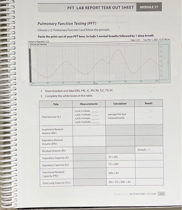 PFT LAB REPORT TEAR OUT SHEET MODULE 17 Pulmonary | Chegg.com