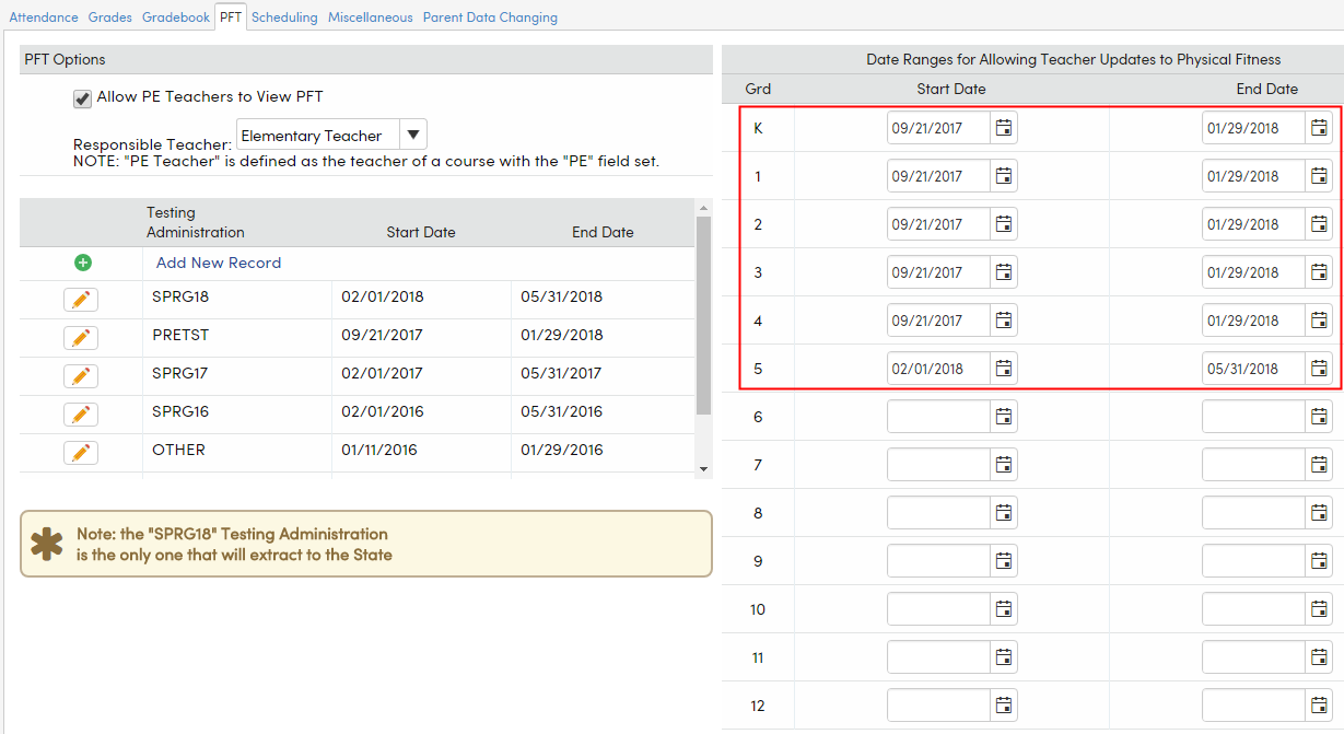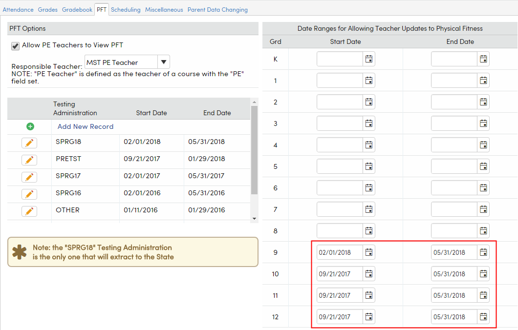 Portal Options - Physical Fitness PFT : Aeries Software