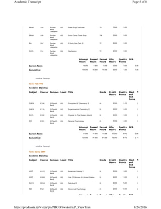 IPFW Unofficial Transcript | PDF