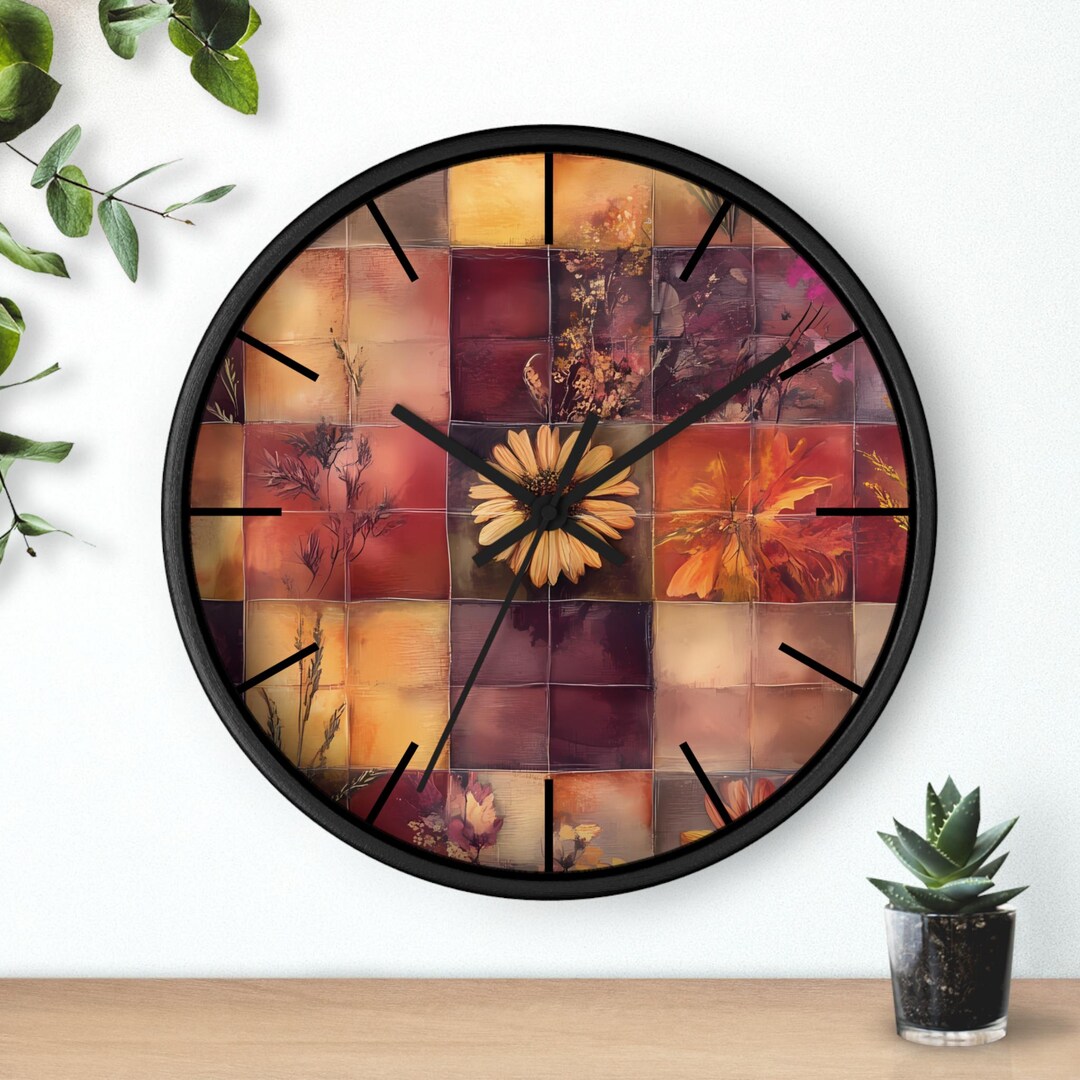 Wildflower Patchwork Clock Cozy Cottagecore Rustic Charm Fall Floral ...