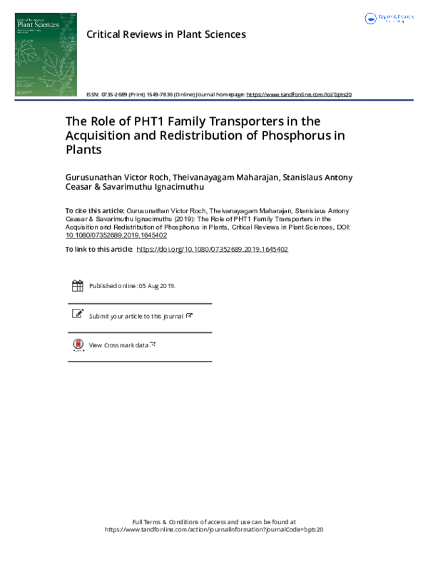 (PDF) The Role of PHT1 Family Transporters in the Acquisition and ...