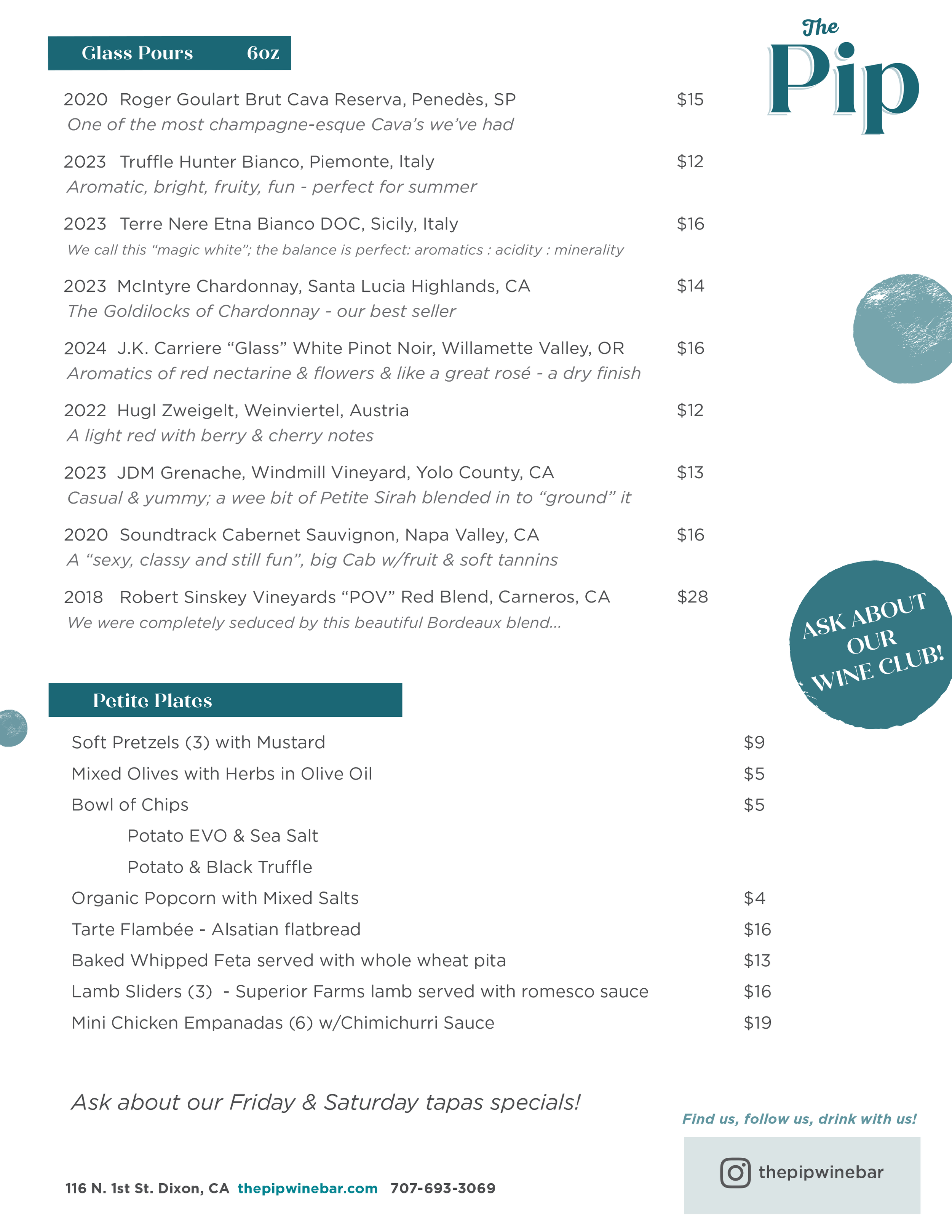The Pip Wine Bar & Shop Menu in Dixon, CA | Order Delivery & Reviews