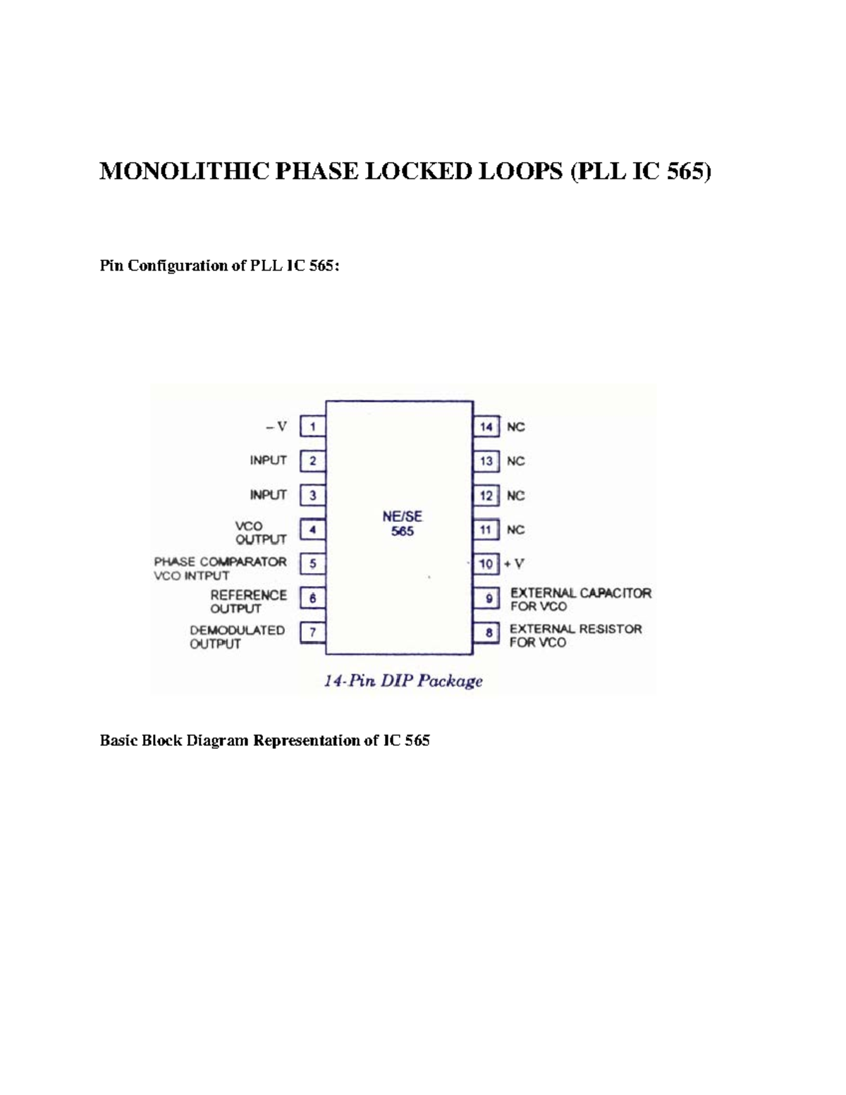 IC 565 Phase Locked Loop - Pin Diagram, IC 565 PLL Block Diagram ...
