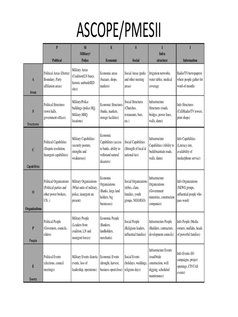 ASCOPE/PMESII: Understanding Political, Military, Economic, | Course Hero