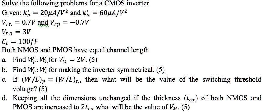 Solved (b) The NMOS and PMOS transistors in the circuit of | Chegg.com