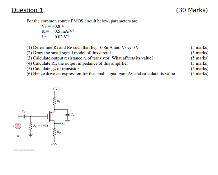 Solved (30 Marks) Question 1 For the common source PMOS | Chegg.com