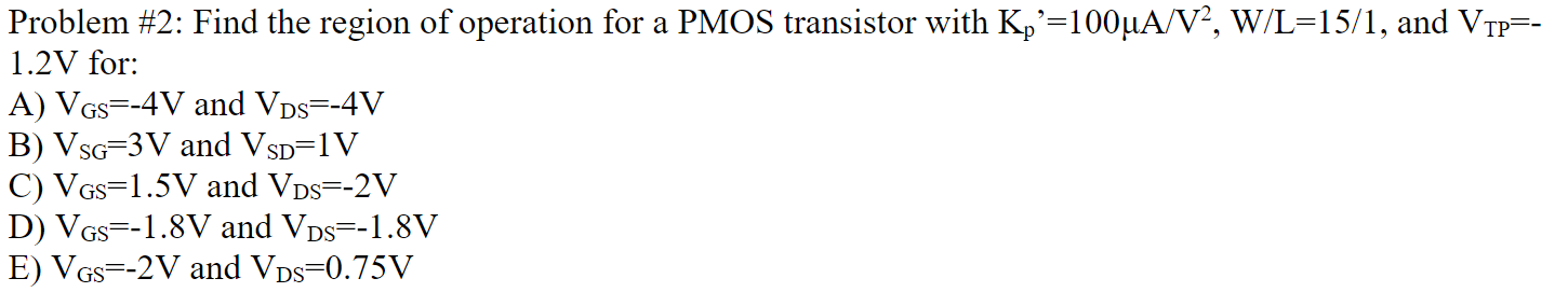 Solved Problem \#2: Find the region of operation for a PMOS | Chegg.com