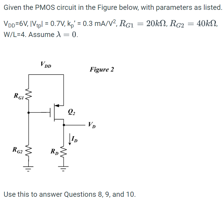 Solved Given the PMOS circuit in Fig. 2, with parameters as | Chegg.com