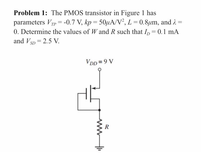 Solved Problem 1: The PMOS transistor in Figure 1 has | Chegg.com