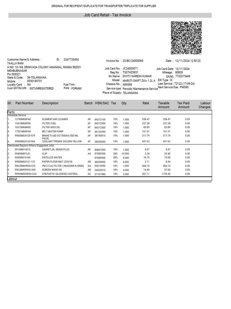 80 Pms Tax Invoice | PDF | Automotive Technologies | Automotive Industry