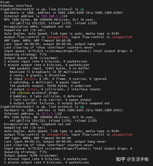 PNET Lab模拟器网络实验:常用排错命令show interface、show ip interface、show ip ...