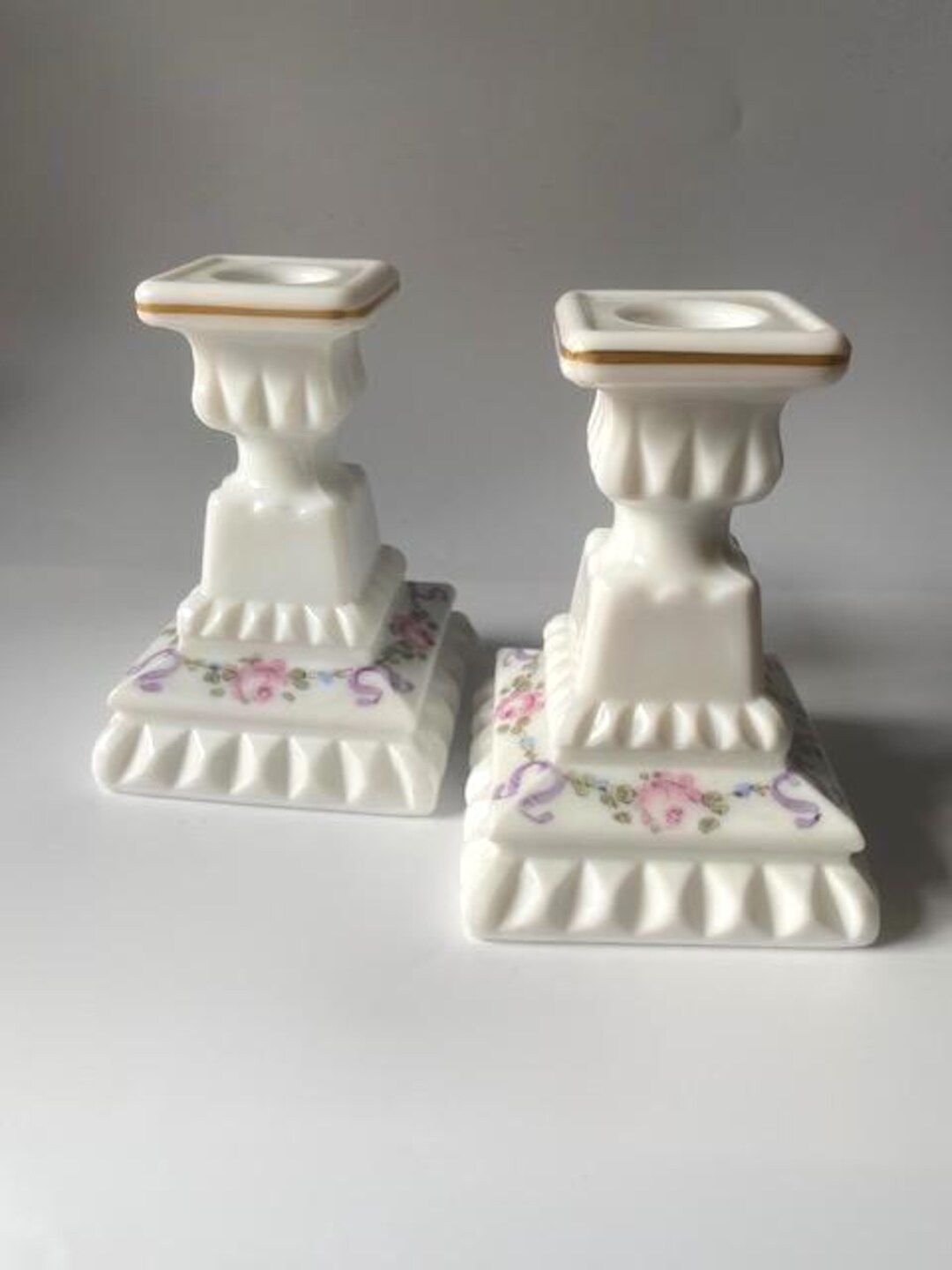 Pair of Westmoreland Milk Glass Handpainted BLOSSOMS & BOWS ...
