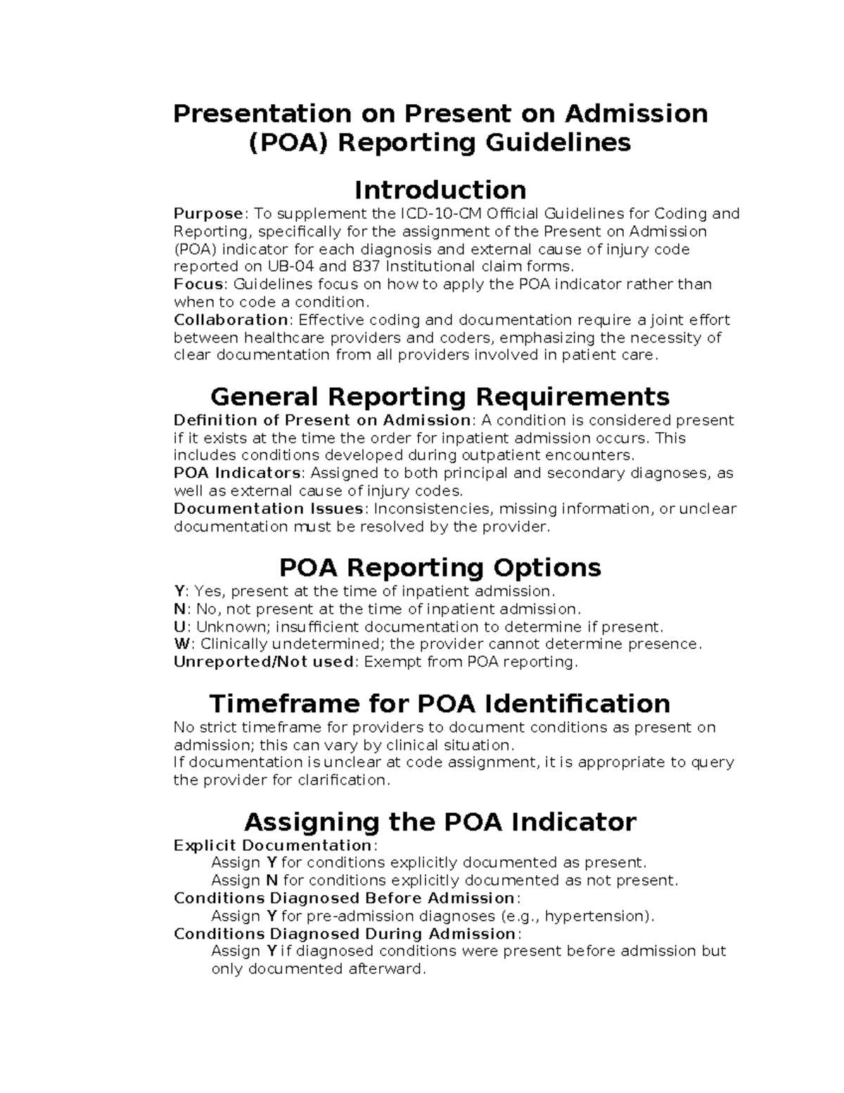 Understanding Present on Admission (POA) in ICD-10-CM Coding | Course Hero