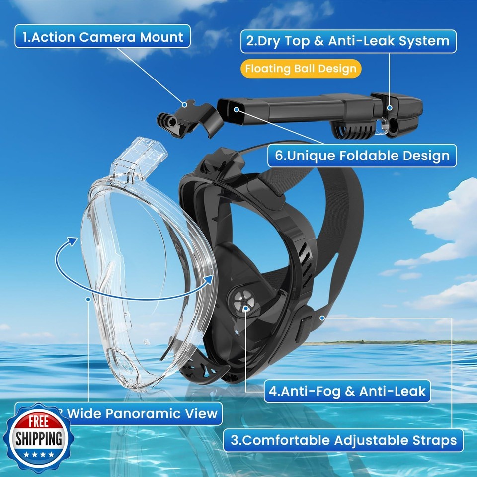 Full Face Snorkel Mask, Snorkeling Gear for Adults, Scuba Mask Di | eBay