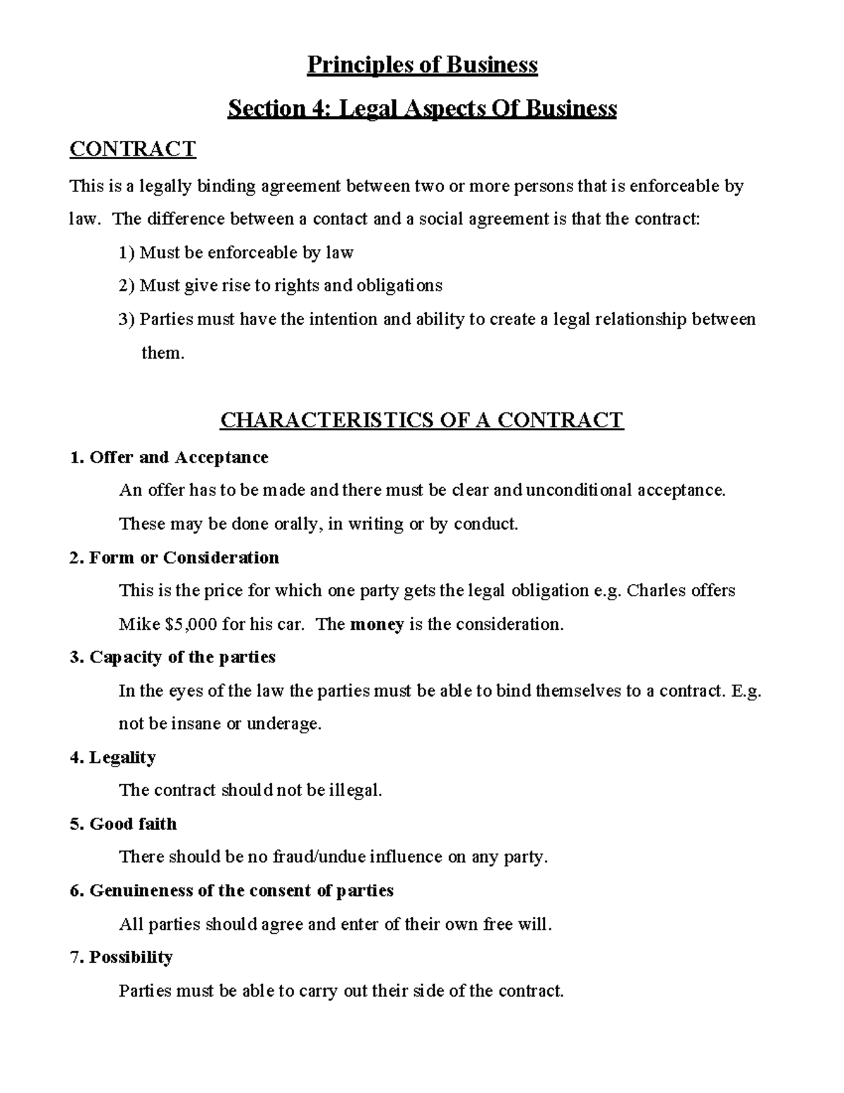 Principles of Business (POB) Section 4: Legal Aspects of Contracts ...