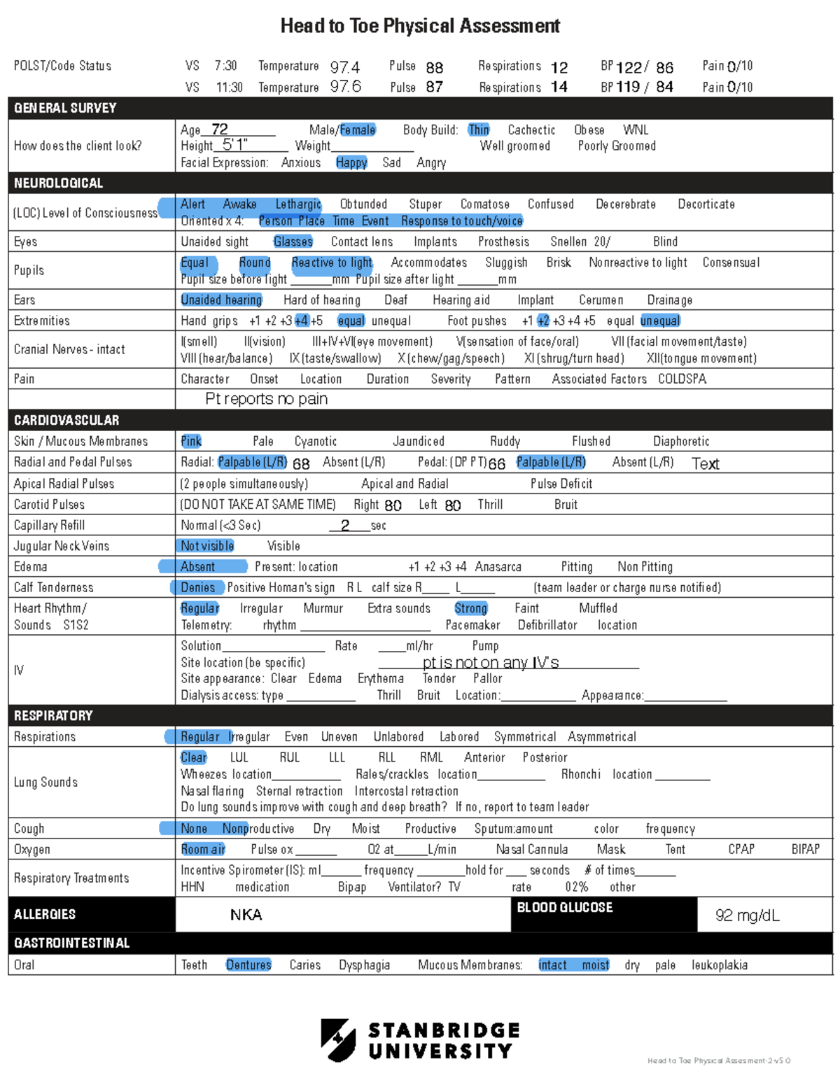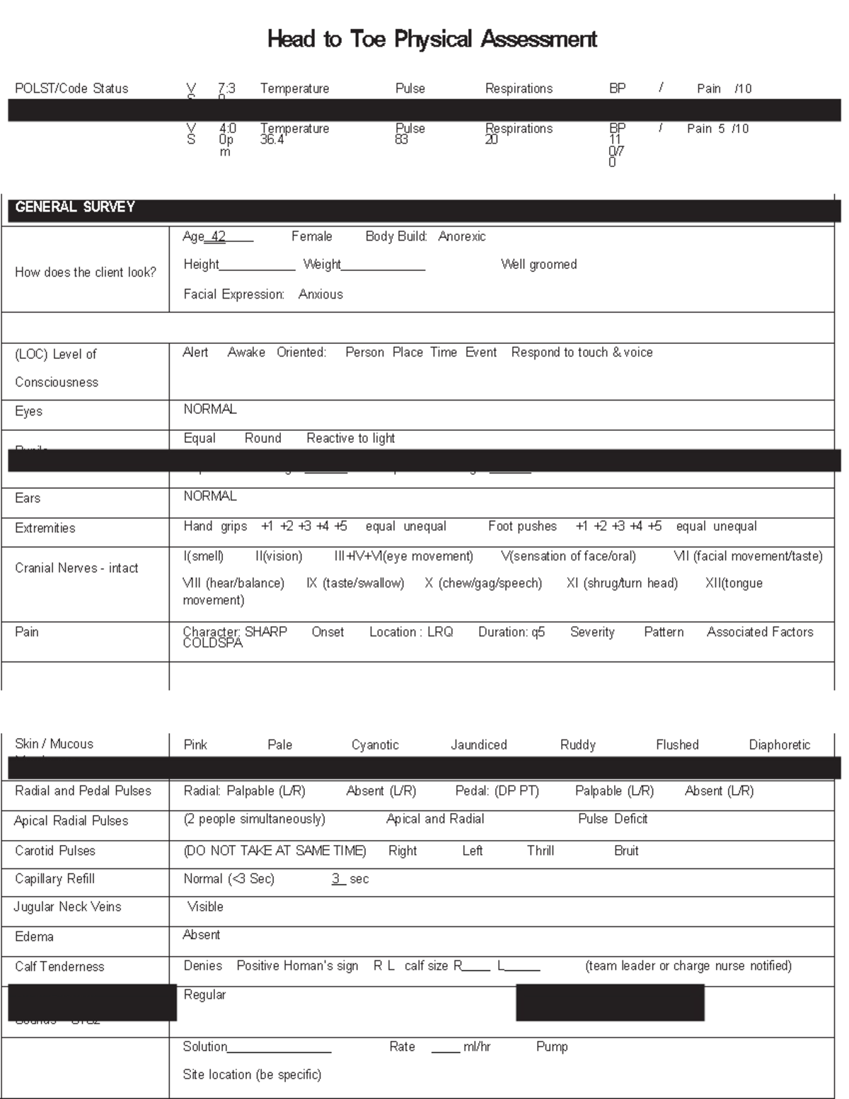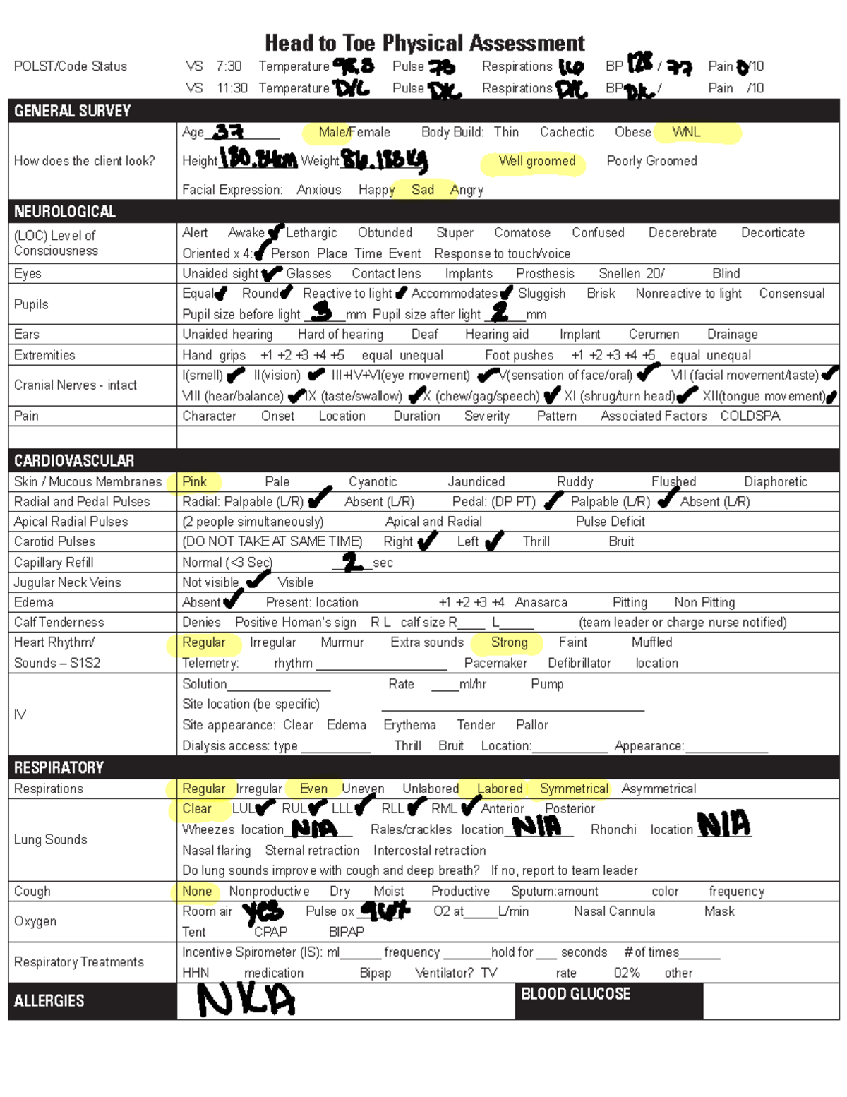 Head to Toe Physical Assessment - POLST/Code Status VS 7:30 Temperature ...