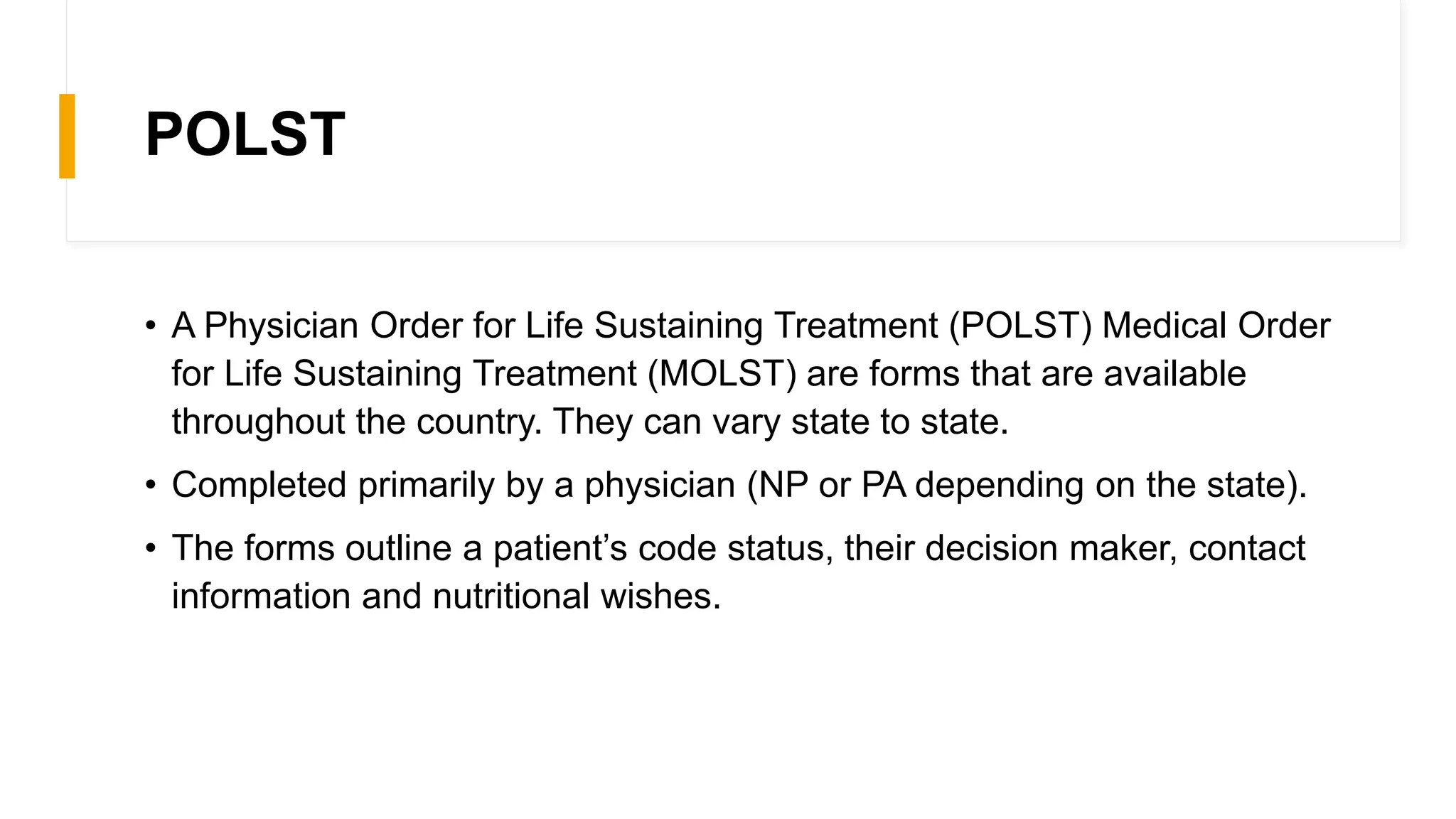 Physician Orders for Life Sustaining Treatment (POLST) – HDSA Center of ...