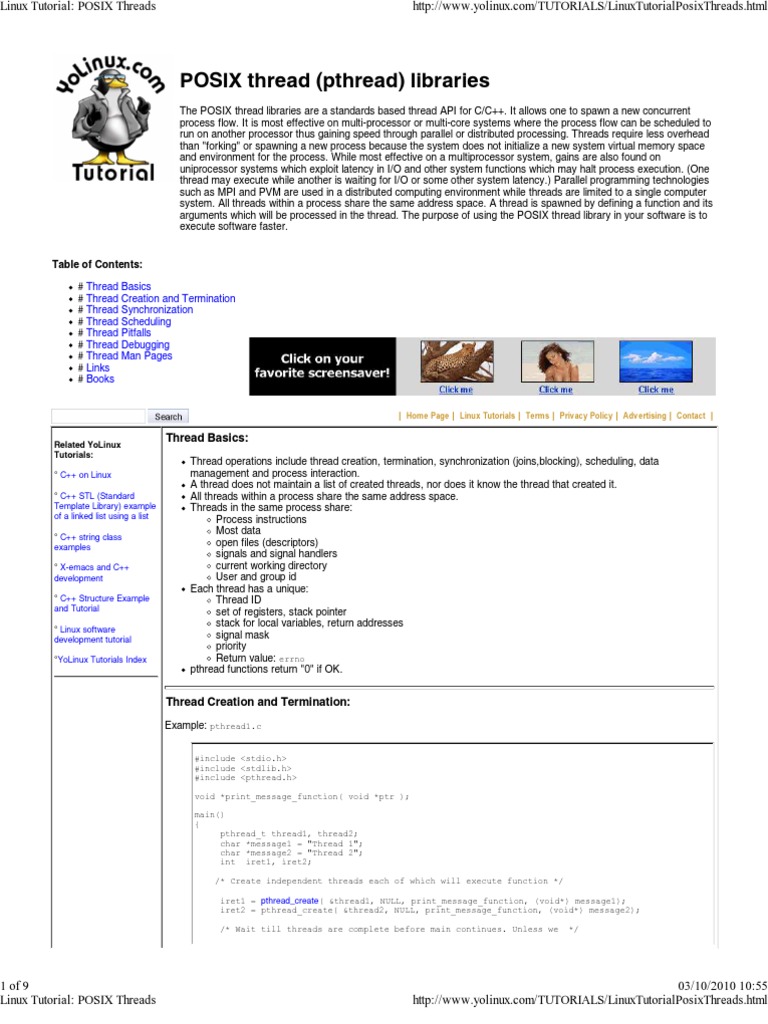 Linux Tutorial - POSIX Threads | PDF | Thread (Computing) | Parallel ...