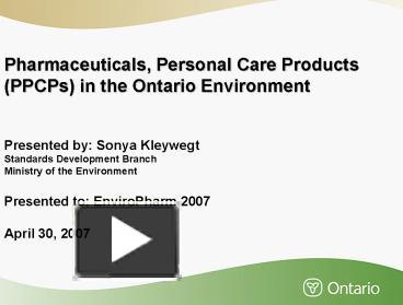 Pharmaceuticals, Personal Care Products PPCPs in the Ontario ...