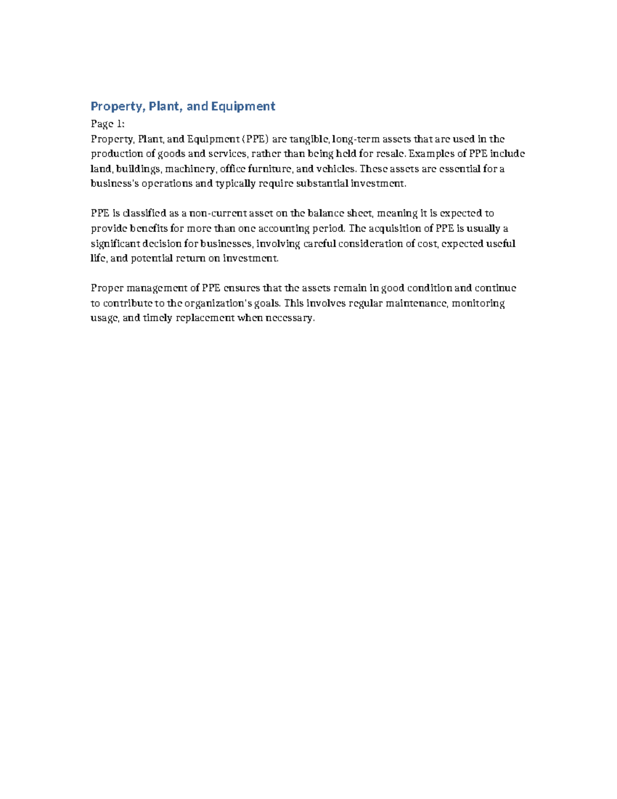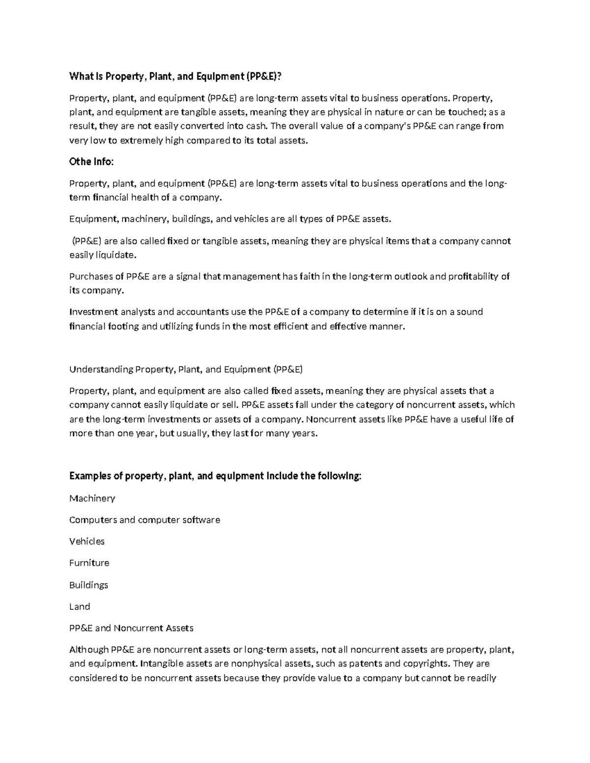 Understanding Property, Plant, and Equipment (PPE) Initial | Course Hero