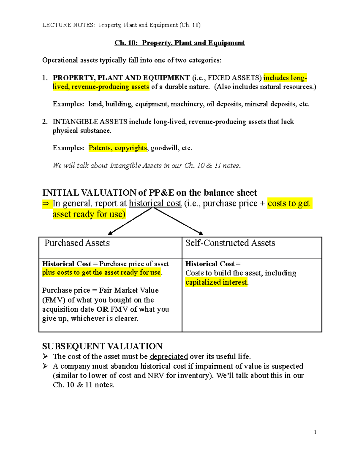 ACC 401 2017 1004 Lecture Notes - Ch. 10 - PPE - LECTURE NOTES ...