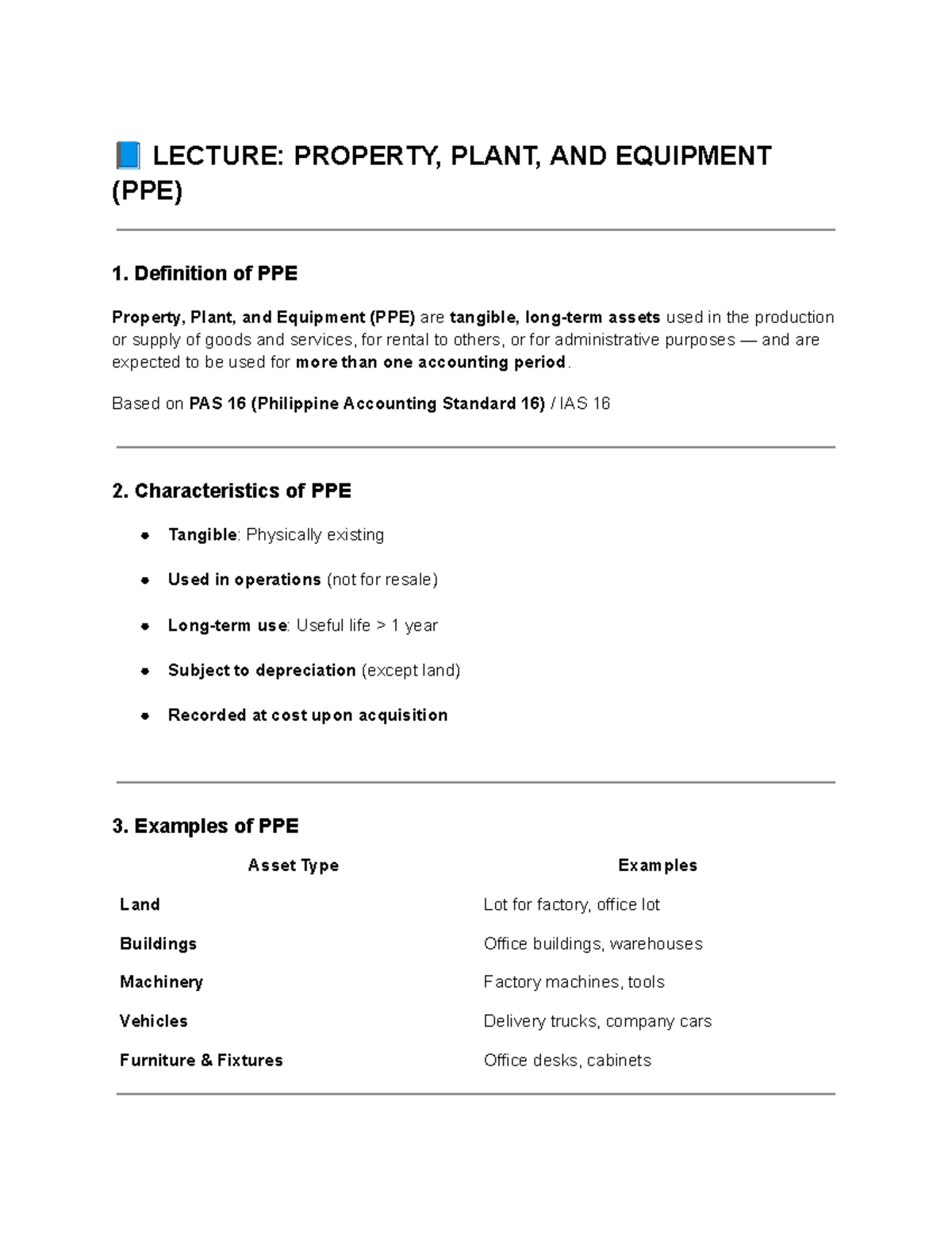 PPE 1 - Lecture Notes 3: Understanding Property, Plant, and Equipment ...