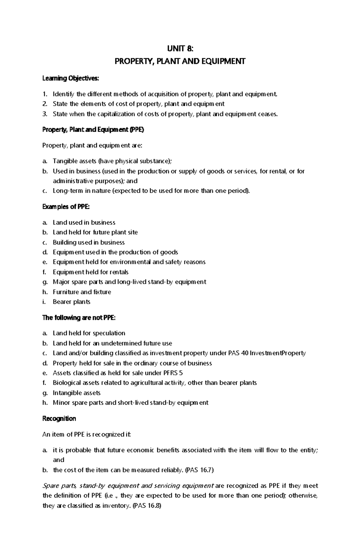 Unit 8: Property, Plant, and Equipment (PPE) - Comprehensive Overview ...