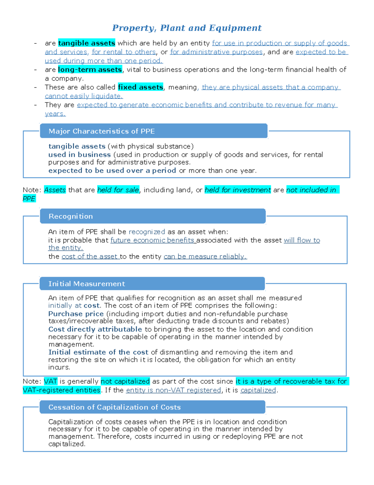 PROPERTY, PLANT AND EQUIPMENT (PPE) NOTES: A Comprehensive Guide - Studocu