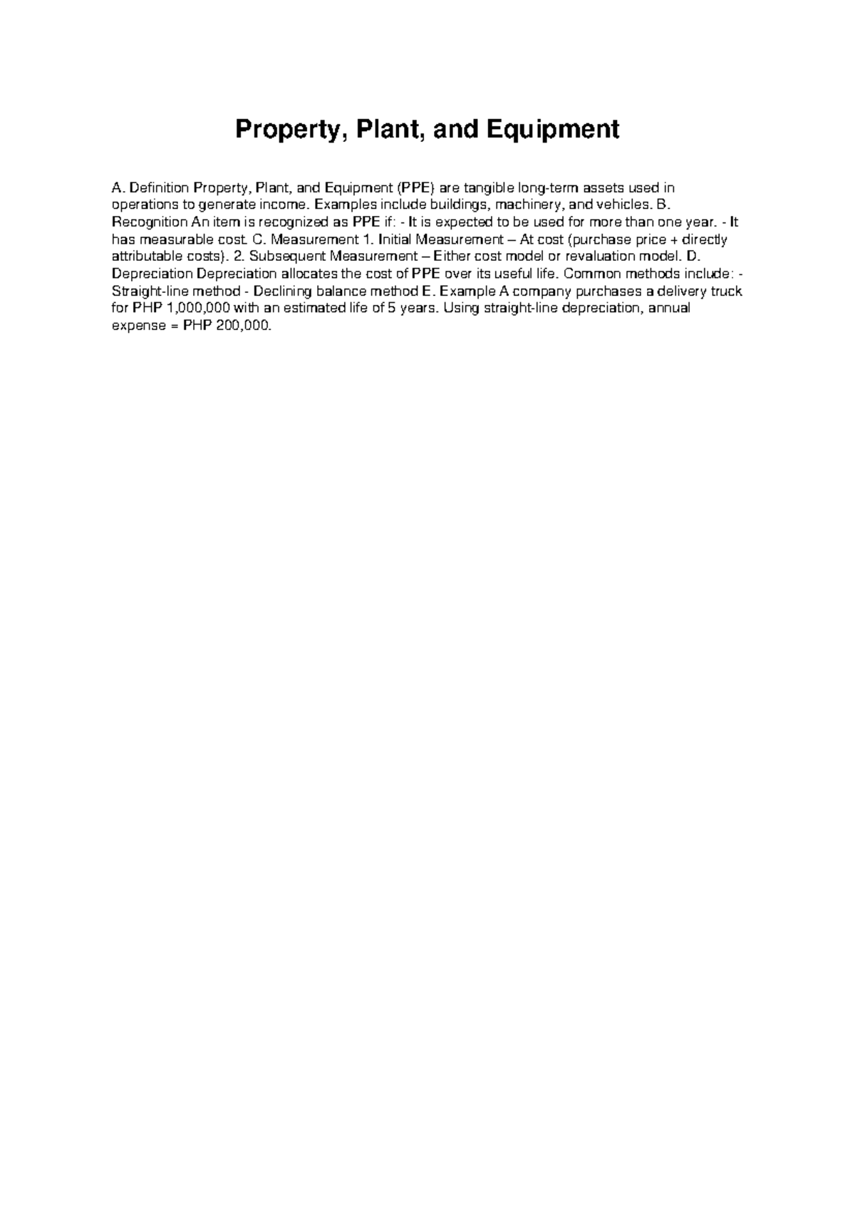 LECTURE: PROPERTY, PLANT, AND EQUIPMENT (PPE) OVERVIEW - Studocu