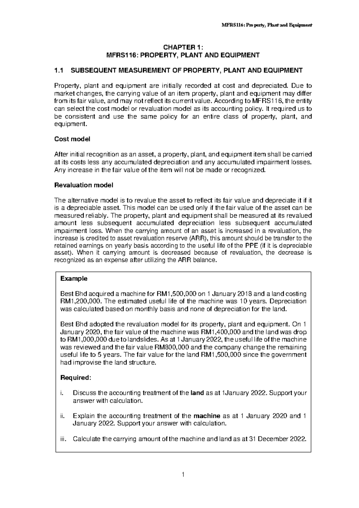 Chapter 1 PPE - CHAPTER 1: MFRS116: PROPERTY, PLANT AND EQUIPMENT 1 ...