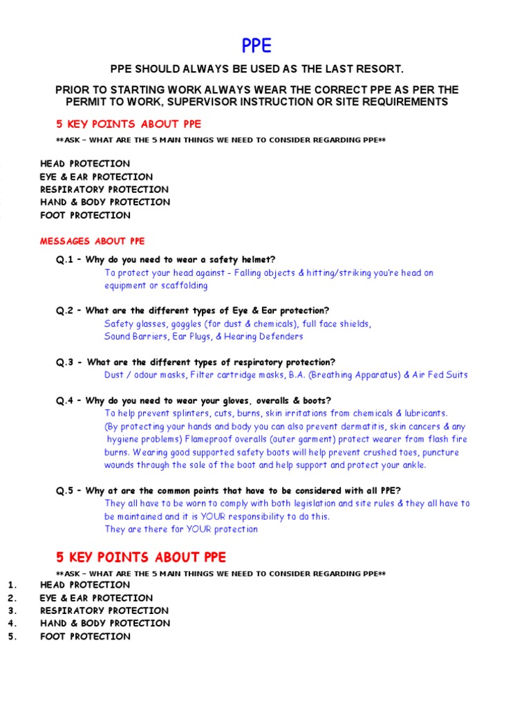 5 Key Points About Ppe | PDF | Personal Protective Equipment | Safety