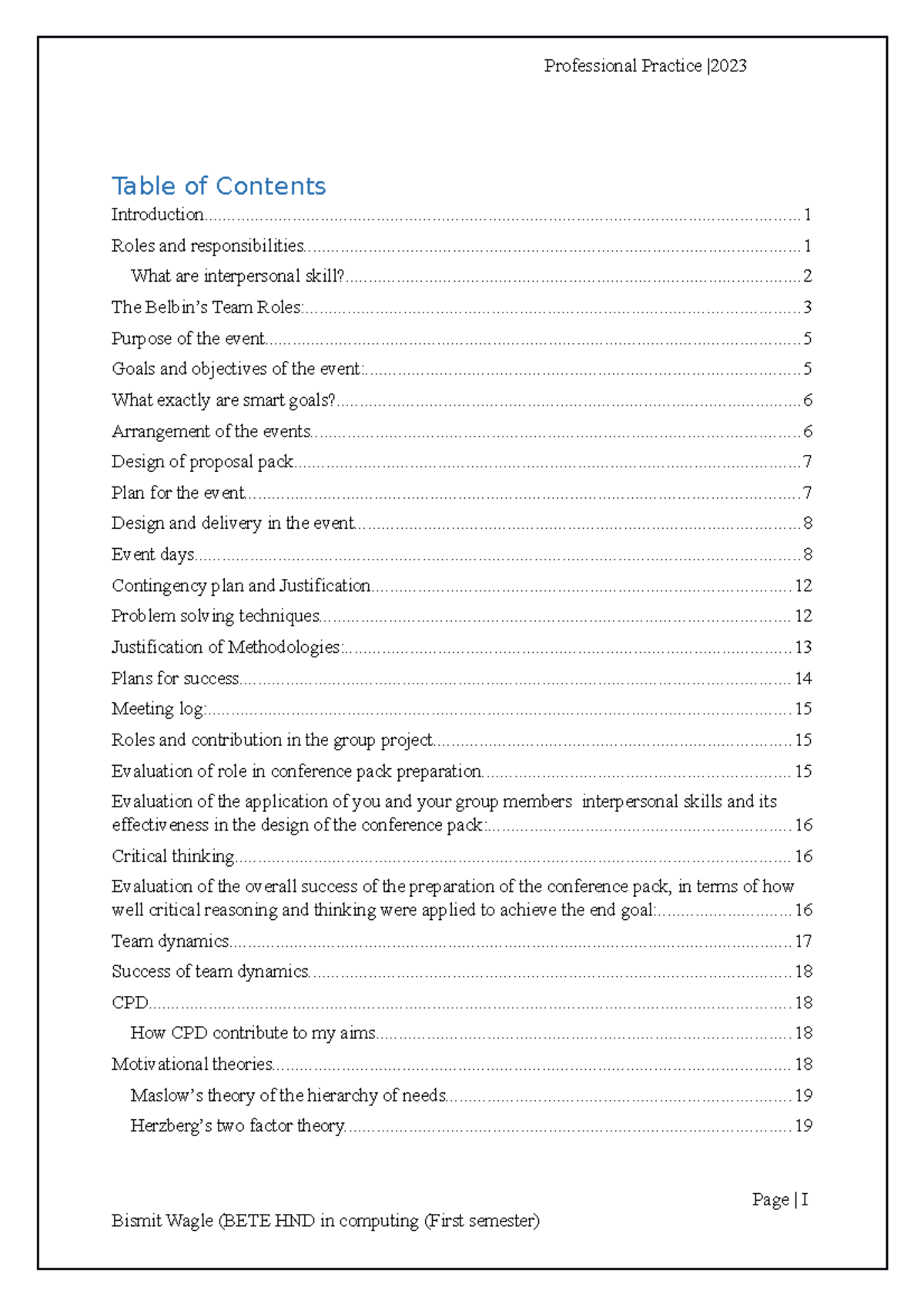FRONT PAGE AND Table of Content | PDF | Career & Growth | Self-Improvement