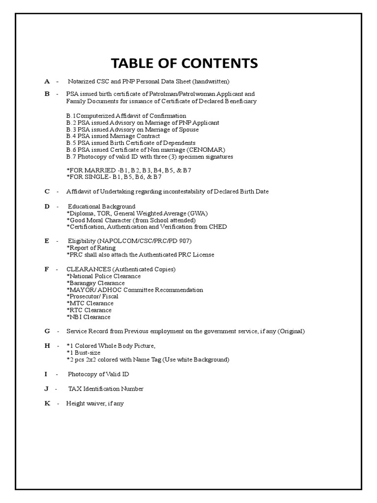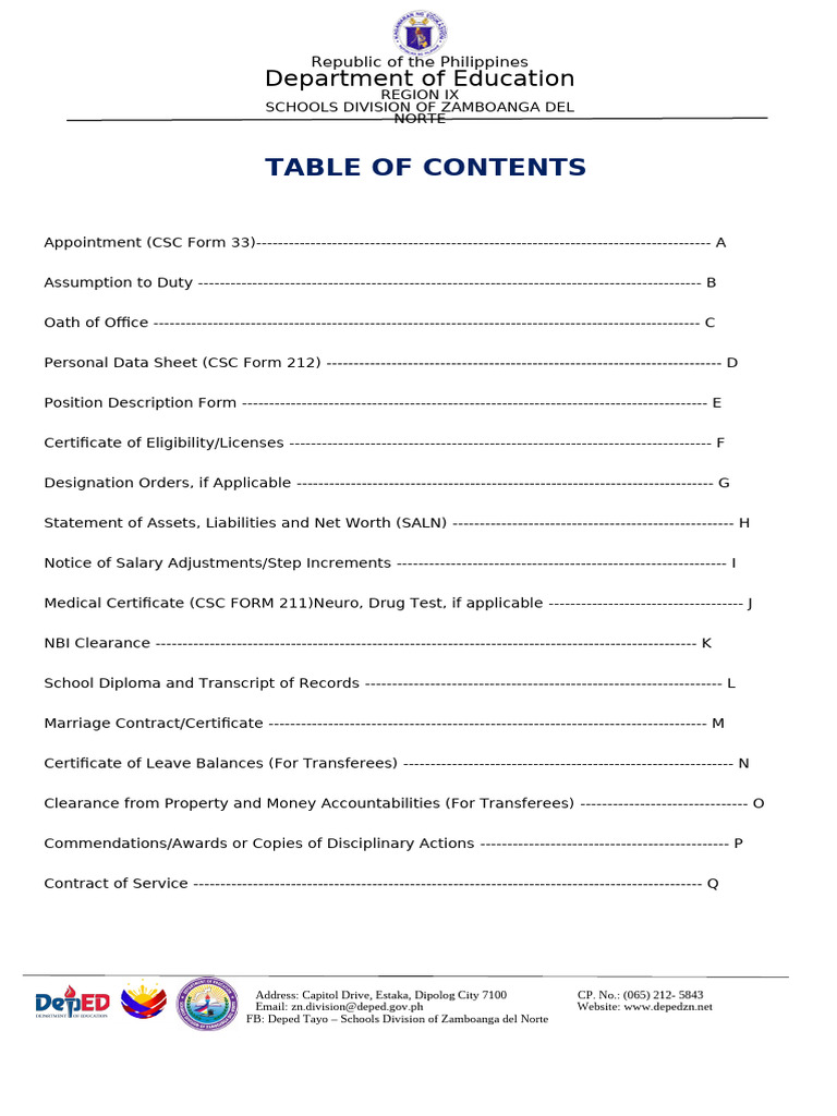 Table-OF- Contents - PPF TABLE - TABLE OF CONTENTS CSC PDS (Revised ...